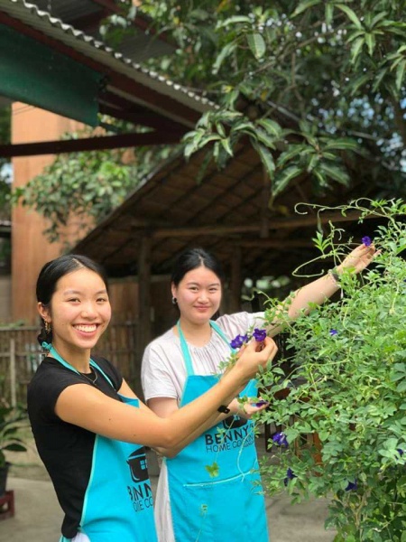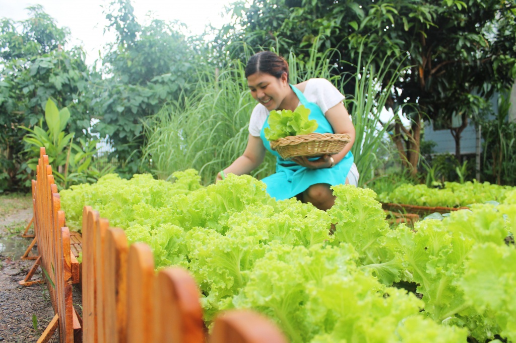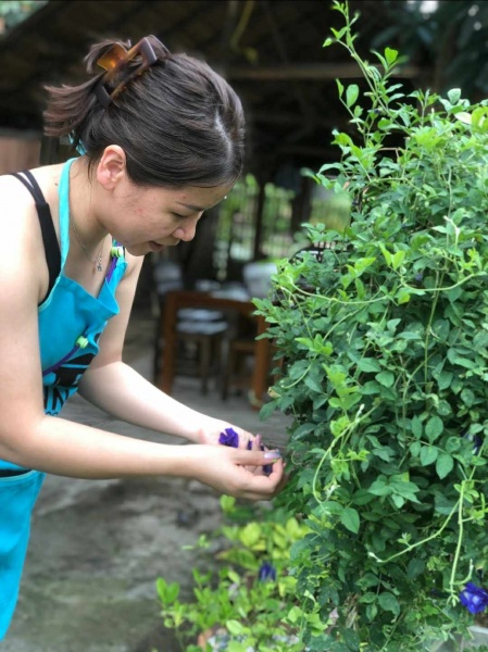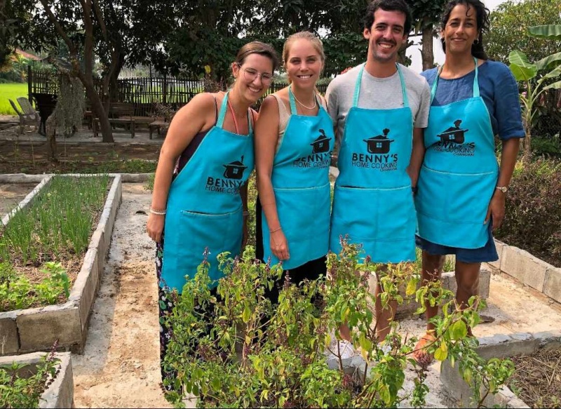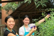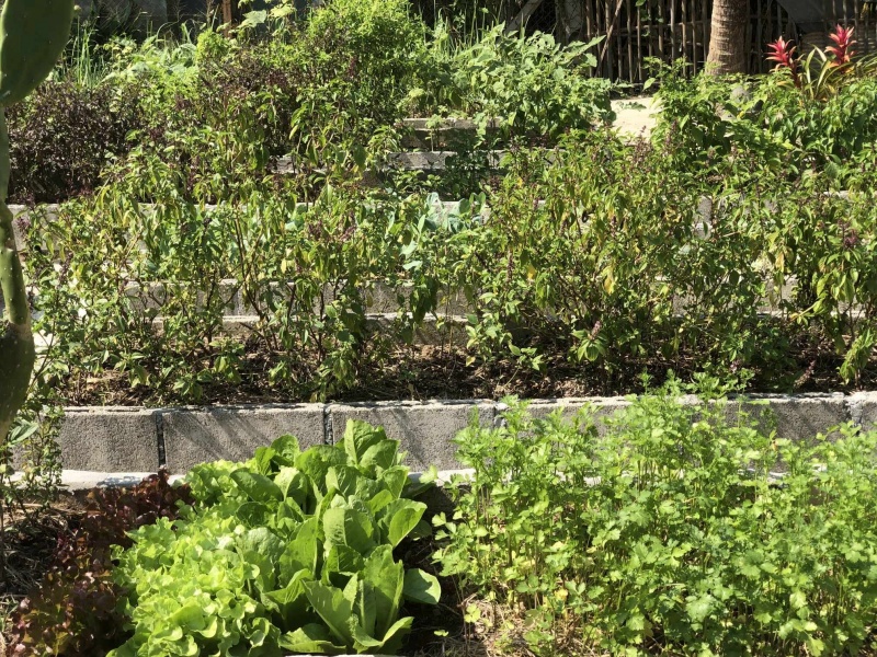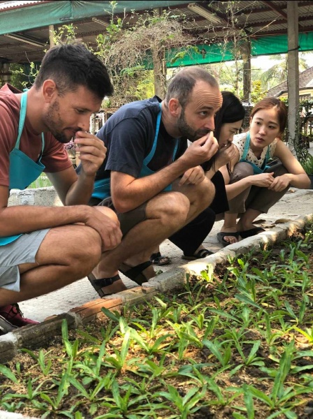 We care about the quality of our food, so for this reason we grow organic foods in our garden. So we can pick all our fresh ingredients daily for use and we want to share this experience with you. We do not use pesticides, and grow plants that will help to control bugs and insects. So when you come to our cooking school, you can pick the ingredients for the meal yourself, and see how and where they grow.